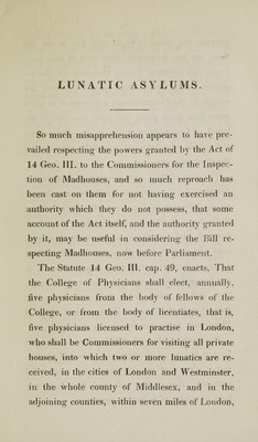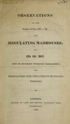Credit: Observations on the Statute 14 Geo. III c. 49, for regulating madhouses, and on the Bill now in progress through Parliament, for regulating the treatment of insane persons. Source: Wellcome Collection.