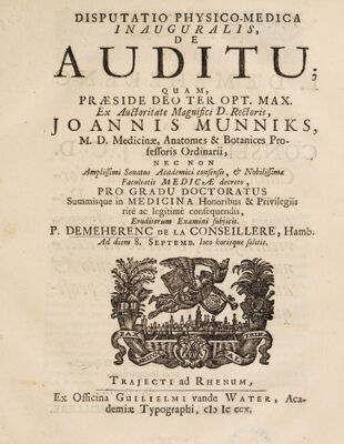 Disputatio physico-medica inauguralis, de auditu ... / [P. Demeherenc de la Conseillere].