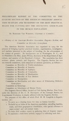 Preliminary report of the Committee of the Eugenic Section of the American Breeders' Association to study and to report on the best practical means for cutting off the defective germ-plasm in the human population.