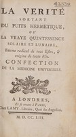 La verité sortant du puits hermetique, ou la vraye quintessence solaire et lunaire, baume radical de tout estre, et origine de toute vie. Confection de la medecine universelle / [Philovite]. Public Domain Mark. Source: Wellcome Collection.