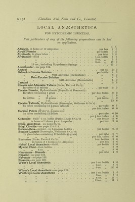 Anæsthetics and anæsthetic apparatus, June 1911 / Claudius Ash, Sons and Co. Ltd.