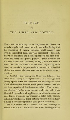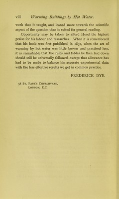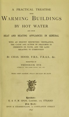 A practical treatise upon warming buildings by hot water : and upon heat and heating appliances in general, with an enquiry respecting ventilation, the cause and action of draughts in chimneys or flues, and the laws relating to combustion / rewritten by Frederick Dye.