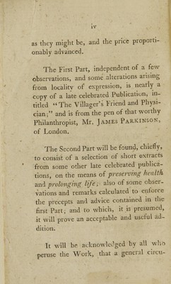 Credit: The town and country friend and physician, or, An affectionate address on the preservation of health, and the removal of disease on its first appearance : supposed to be delivered by a country physician to the circle of his friends and patients on his retiring from business : with cursory observations on the treatment of children, &c. Intended for the promotion of domestic happiness : in two parts. Source: Wellcome Collection.