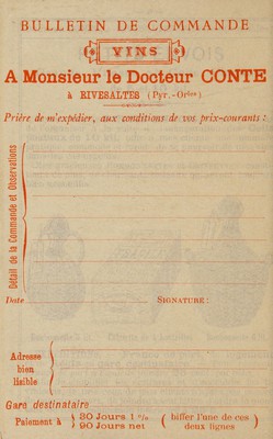 Vins vieux de table, vins fins, vins pharmaceutiques / Docteur Conte.