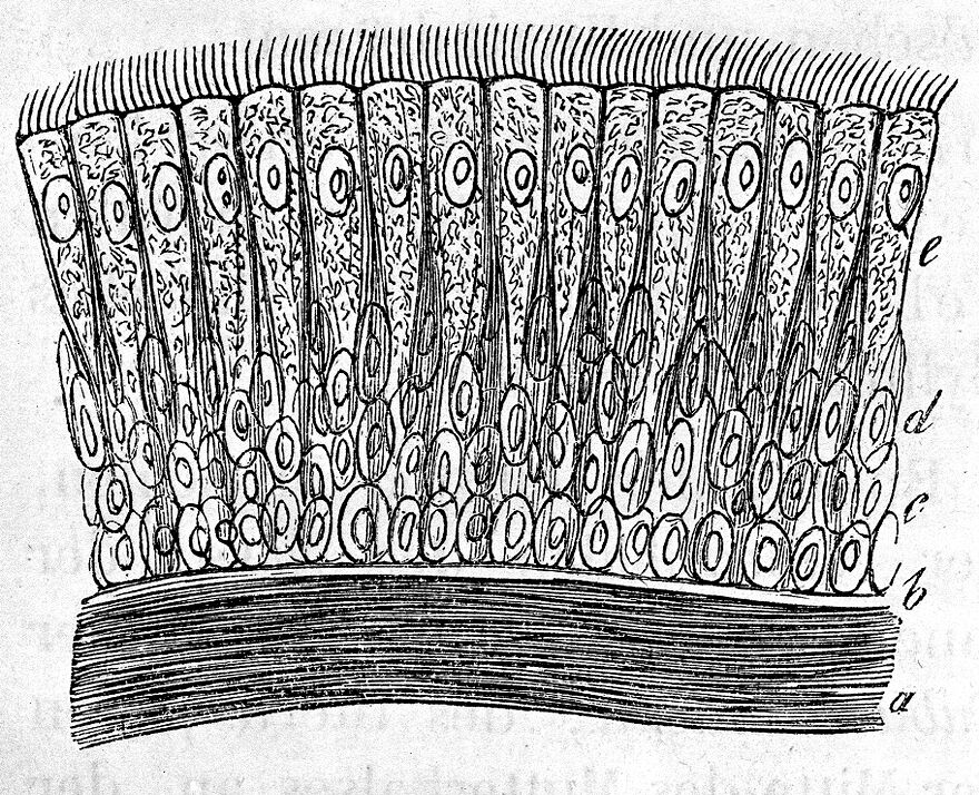 Credit: M0011238: Ciliated epithelium from the human windpipe. Source: Wellcome Collection.