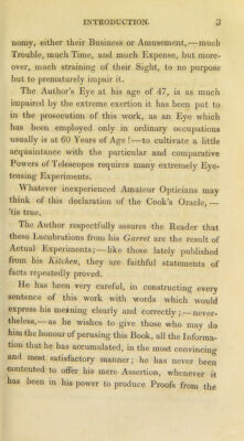 Credit: The economy of the eyes. --Part II. Of telescopes; : being the result of thirty years' experiments with fifty-one telescopes, of from one to nine inches in diameter, / in the possession of William Kitchiner, M.D. author of The cook's oracle; The housekeeper's ledger; The art of invigorating and prolonging life; The pleasure of making a will; Observations on singing, &c.; and editor of The loyal, national, and sea songs of England. To which are added, an abstract of the practical parts of Sir Wm. Herschel's writings on telescopes and double stars, &c.; some observations thereon, and original letters from eminent opticians. Source: Wellcome Collection.