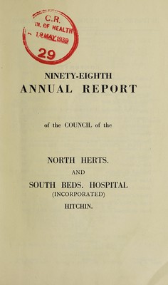 Annual report of the Council of the North Herts. and South Beds. Hospital, Hitchin : 1938.