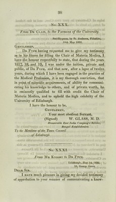 Testimonials in favour of Andrew Fyfe for the chair of Materia Medica and Pharmacy.