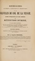 Recherches anatomiques, pathologiques et thérapeutiques sur les valvules du col de la vessie, cause fréquente et peu connue de rétention d'urine. Et sur leur rapports avec les inflammations et les rétrécissements de l'uréthre, les maladies des organes génitaux, les pertes séminales, l'inertie et le catarrhe de la vessie, les inflammations et les calculs de l'appareil urinaire, etc / [Louis Auguste Mercier]. Public Domain Mark. Source: Wellcome Collection.