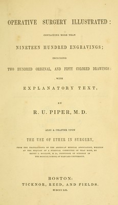 Operative surgery illustrated : containing more than nineteen hundred engravings : including two hundred original, and fifty colored drawings: with explanatory text / by R.U. Piper ; also a chapter upon the use of ether in surgery.