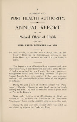 [Report 1939] / Medical Officer of Health, Sunderland Port Health Authority.