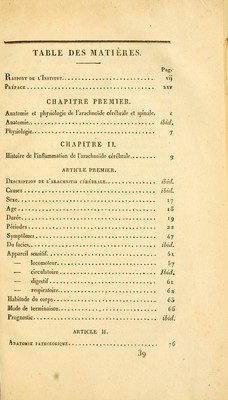 Recherches sur l'inflammation de l'arachnoïde cérébrale et spinale : ou, Histoire théorique et pratique de l'arachnitis / par Parent-Duchatelet et L. Martinet.