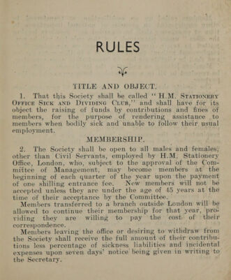 Credit: Revised rules of H.M. Stationery Office Sick and Dividing Club. Source: Wellcome Collection.