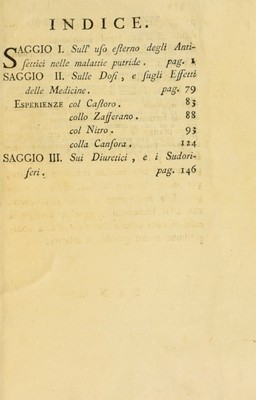 Saggi di esperienze: I. Sull'uso esterno degli antisettici nelle malattie putride. II. Sulle dosi, e sugli effetti delle medicine. III. Sui diuretici, e i sudoriferi / Tradotti dall'Inglese in volgare Italiano da Agostino Gambarelli.