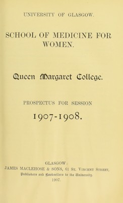 Prospectus for session 1907-1908 / University of Glasgow, Queen Margaret College, School of Medicine for Women.